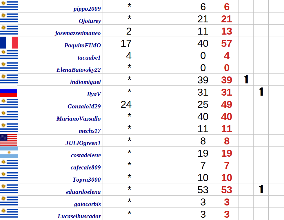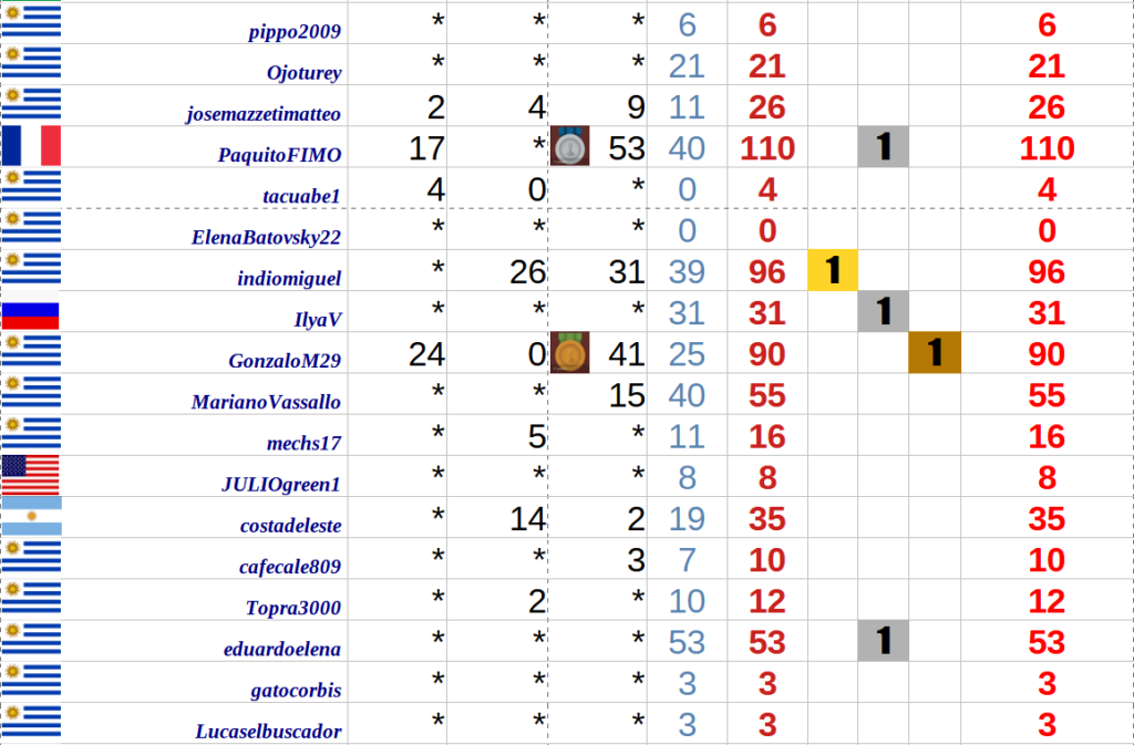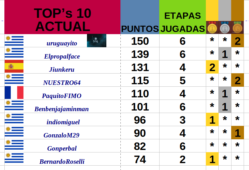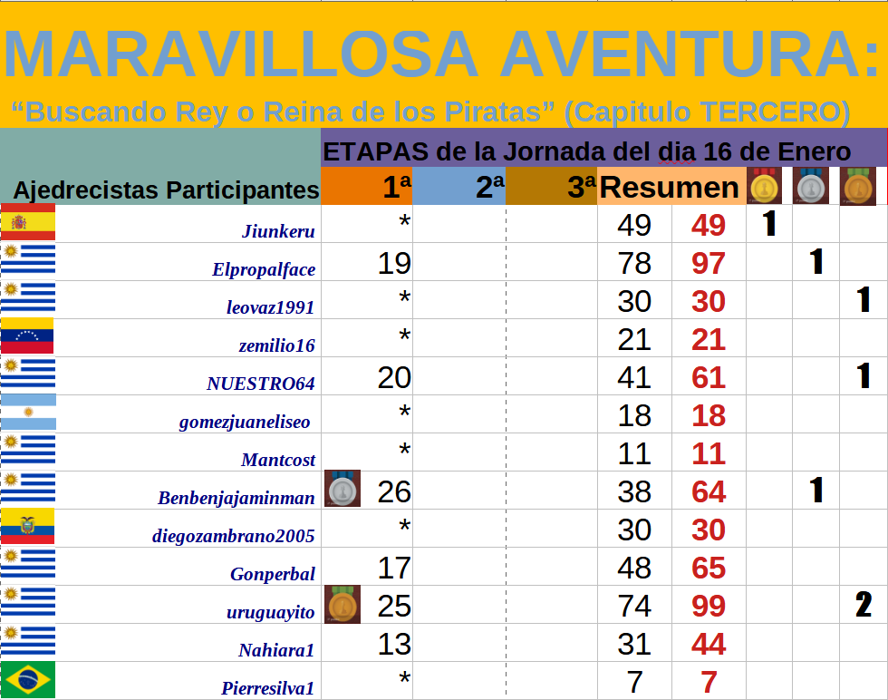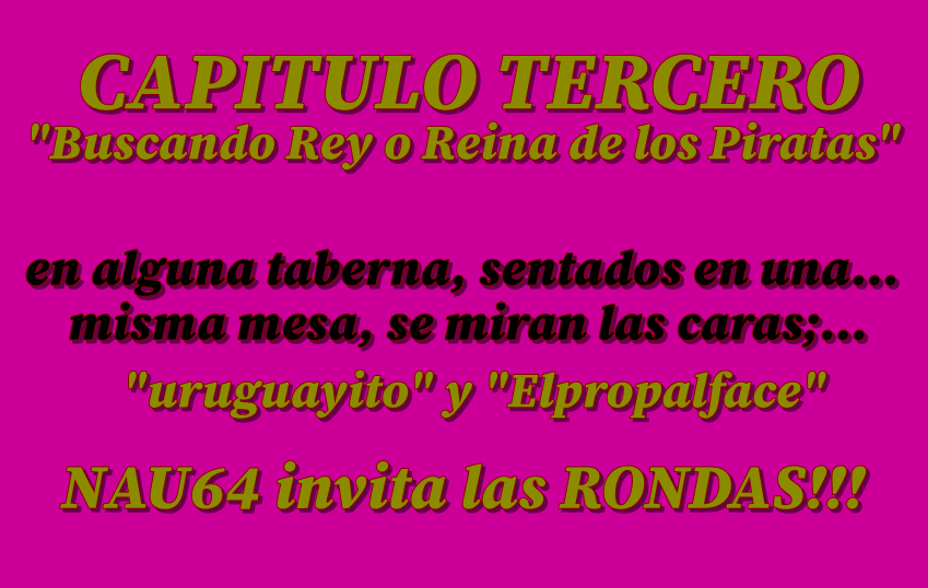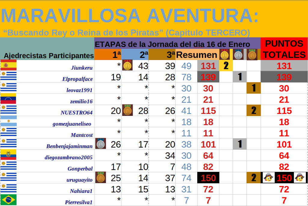 Se quiere distanciar «uruguayito», ya alcanzo los 150pts en las 6 primeras ETAPAS de las 21 que conforman este y cada uno de los 4 CAPITULOS de esta MARAVILLOSA AVENTURA,… pero,… tampoco se distancia lo suficiente ya que es perseguido por 2 PIRATAS de MUCHISIMO cuidado y para respetar como lo son «Elpropalfaace» con 139pts y «Jiunkeru» con 131pts.