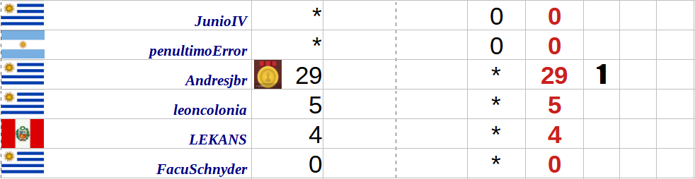 Con emocionante escore de 99pts lidera «uruguayito» y ahora el escolta paso a ser «Elpropalface» con 97pts !!!