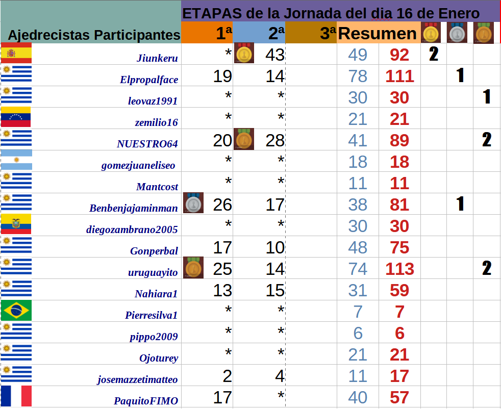 CAPITULO TERCERO, jornada del día 16 de Enero (ETAPAS 1, 2 y 3) de momento la que se jugó: (la ETAPA 1)