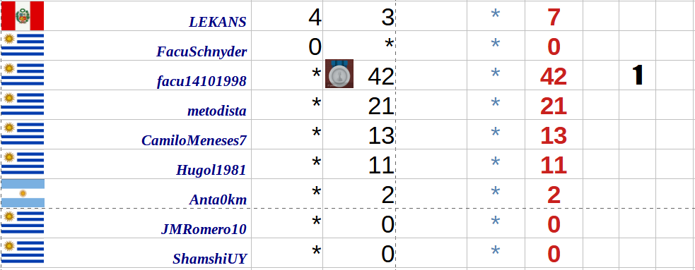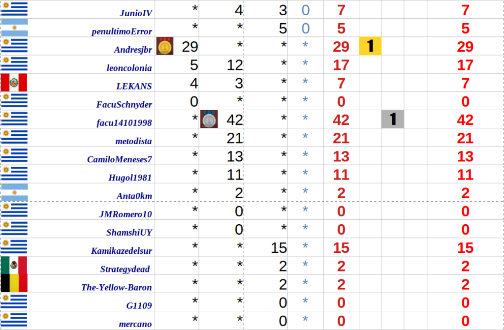 La lucha suma nuevos PIRATAS a la FIESTA aunque el lider sigue siendo «uruguayito» con 113pts y el mas proximo perseguidor igualmente «Elproppalface» a solamente 2pts de distancia con 111pts.