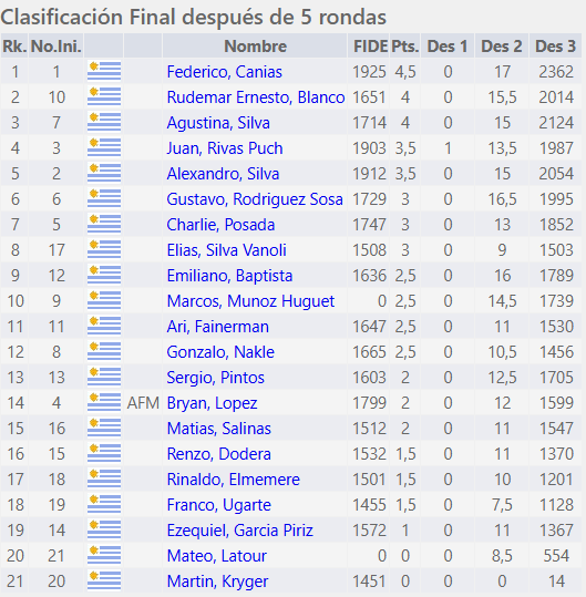 Posteriormente se disputó el torneo Sabatino de Blitz a ritmo de 3+2 en el cual Juan Rivas se logró imponer como vencedor dentro de un total de 8 jugadores.