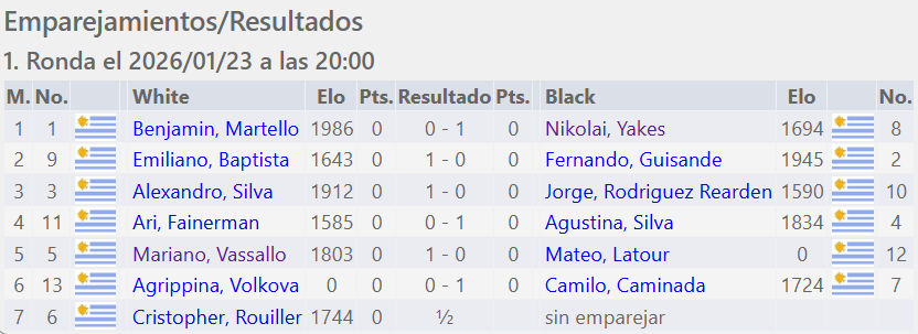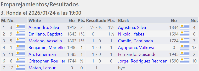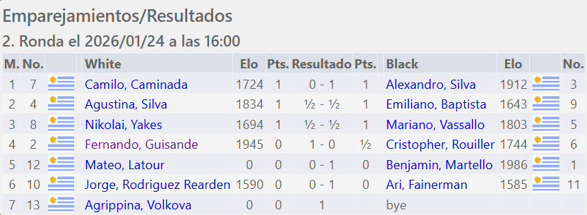 De este Torneo clasificaron los jugadores Mariano Vasallo y Alexandro Silva quienes podrán participar en la Semifinal del Campeonato Uruguayo de Ajedrez.