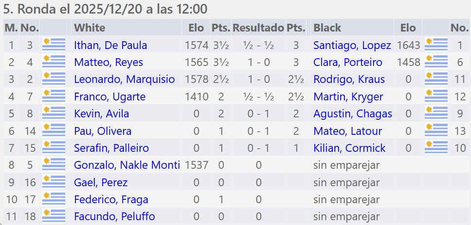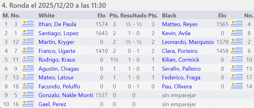 Tercer Puesto Santiago López con 3½ puntos.